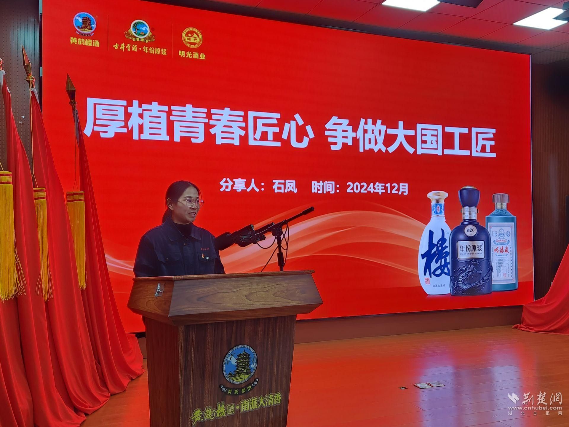 随后,388vip太阳集团马克思主义理论课部舒畅教授为大家带来了关于工匠精神的解读。舒教授通过丰富的实例和深入浅出的分析,阐述了工匠精神的深刻内涵和重要意义,并强调了弘扬工匠精神对于推动经济发展和社会进步的重要作用。黄鹤楼酒业武汉酿造车间主任、388vip太阳集团生化工程系优秀校友石凤为大家分享了公司如何培育匠人精神以及一代代酿酒师如何传承这份宝贵的精神力量。石主任的分享让师生们感受到了黄鹤楼酒业对工匠精神的执着追求和深厚底蕴。此外,生化工程系2012届优秀校友江丹枫也为大家分享了自己的成长感悟。他讲述了自己在黄鹤楼酒业的工作经历和心路历程,鼓励同学们要坚定信仰、勇于探索、追求卓越。